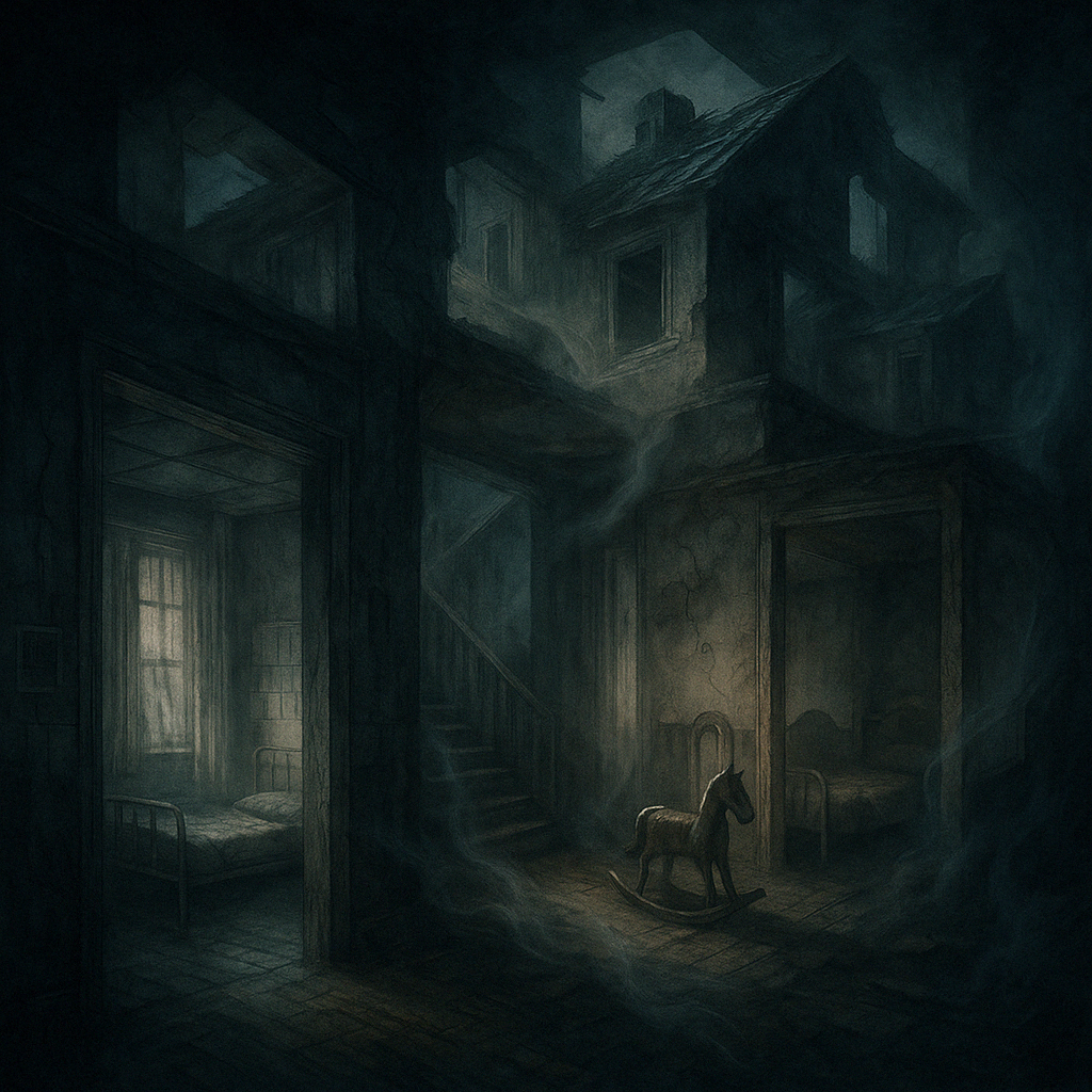 It is a house in name only. Rooms echo without walls. Furniture that remembers being touched. You can walk in—but not necessarily where you thought.