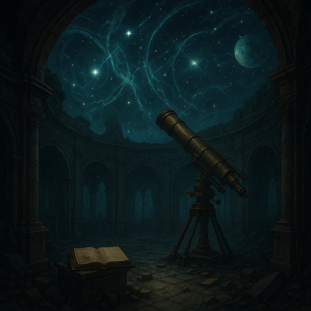 Caldwell once charted constellations here. Elizabeth made notes in disappearing ink. The sky visible from the dome is not our sky. Stars rearrange depending on who’s watching.