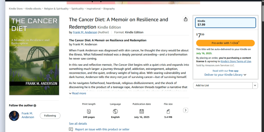 Some of you have followed my writing for a while. You’ve read about Miller. You’ve seen echoes of my life in Paul. You’ve seen how much I need stories that feel lived in, even when they fracture under the weight of truth. The Cancer Diet is that kind of book—but there’s no fiction this time. Just memory. Just survival. Just me.